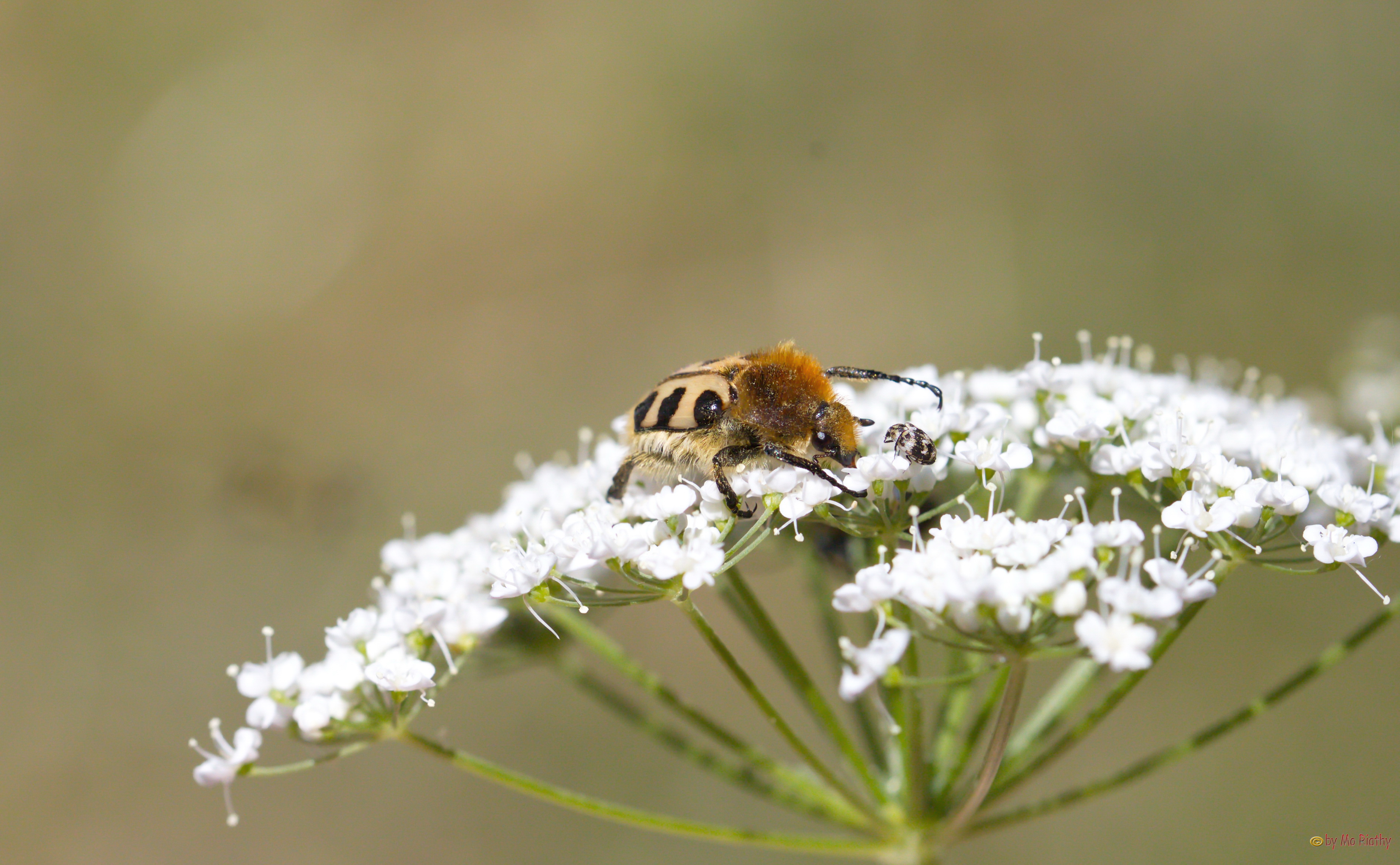 Gebänderter Pinselkäfer (Trichius fasciatus) auf einer wilden Möhre.