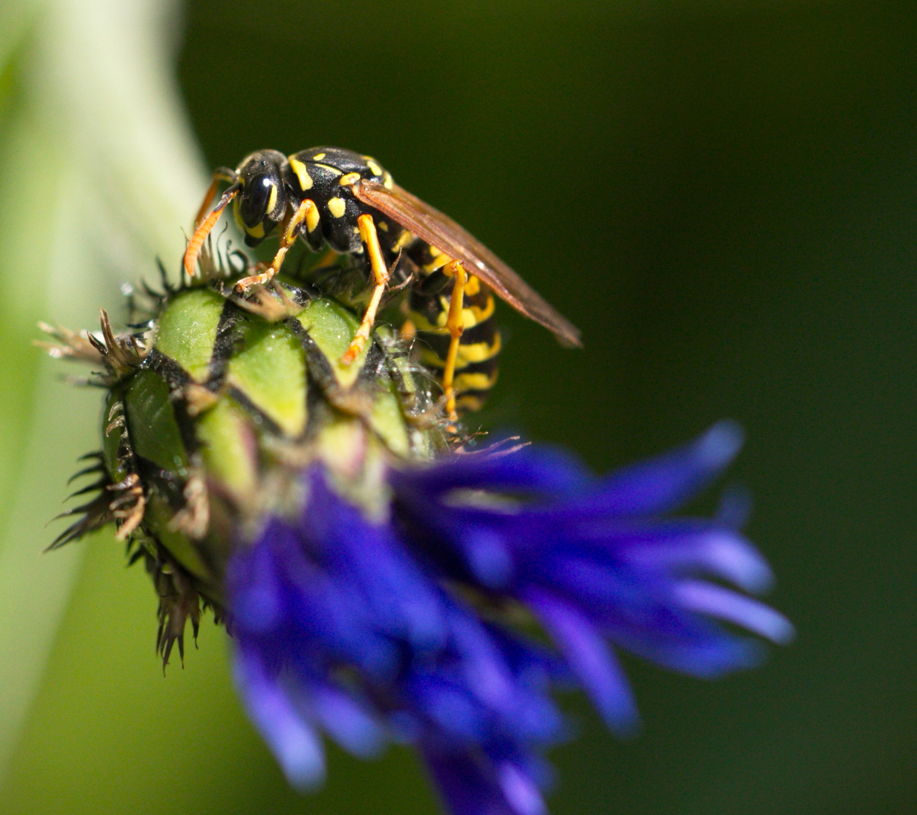 Haus-Feldwespe (Polistes dominula) an einer Flockenblume.