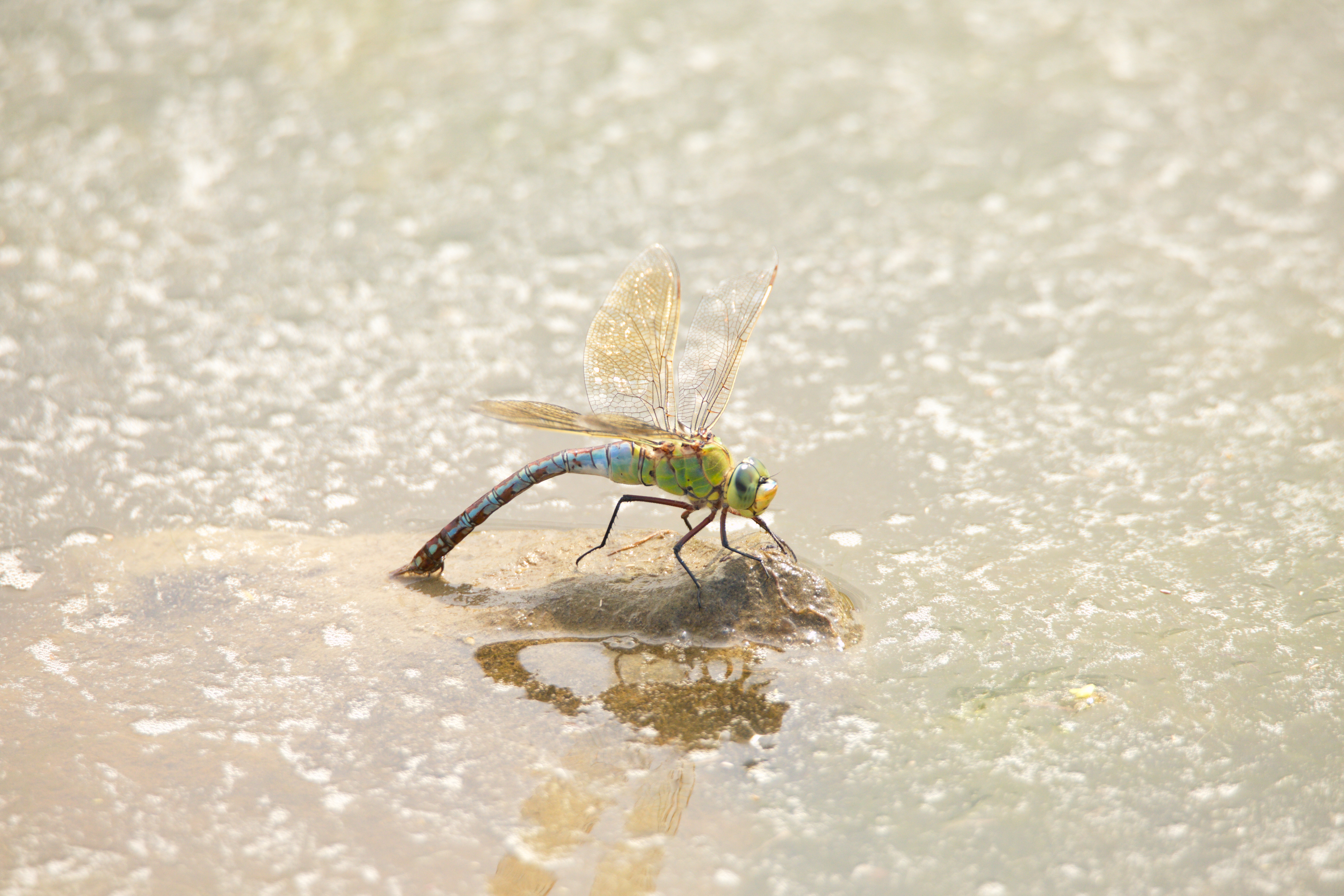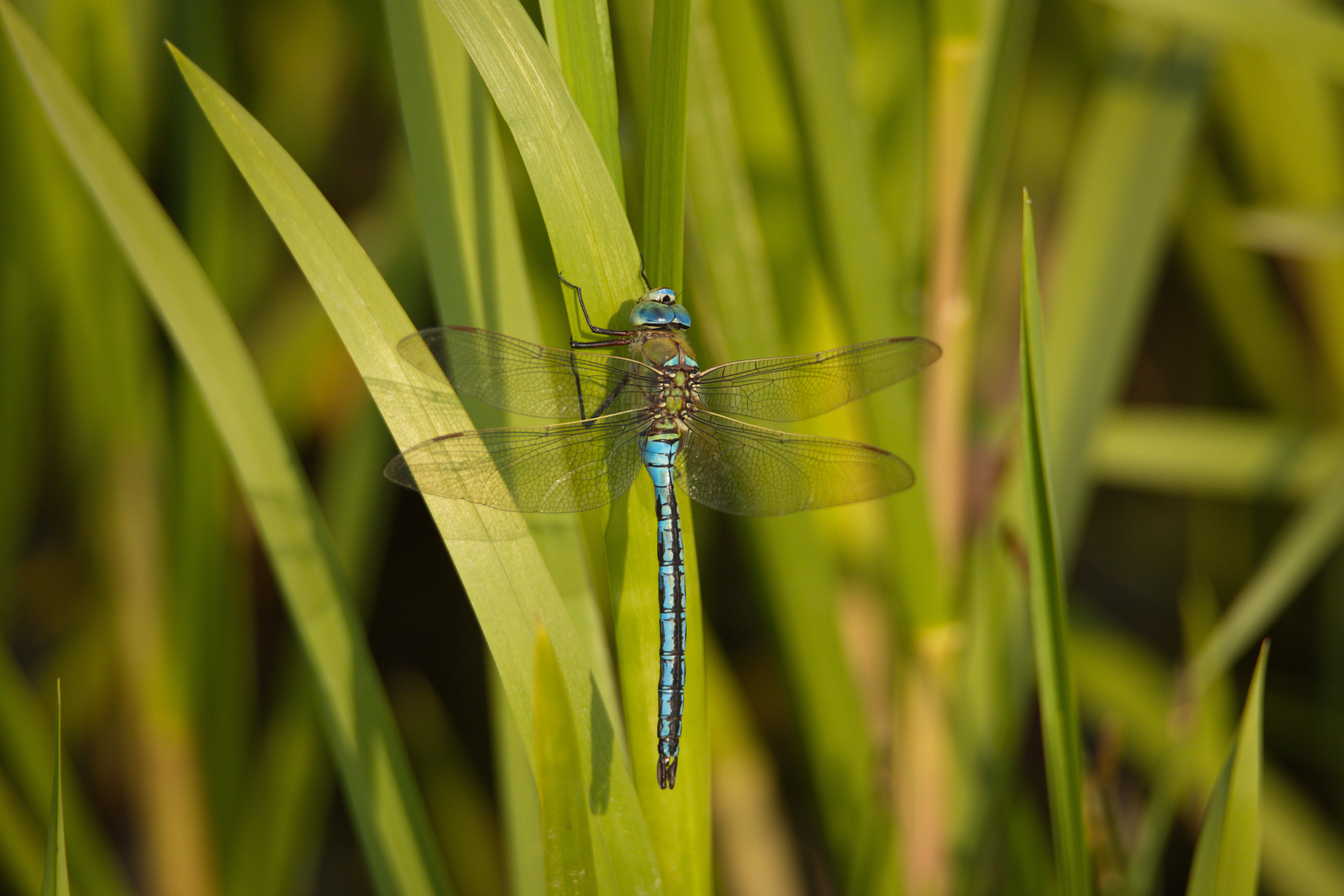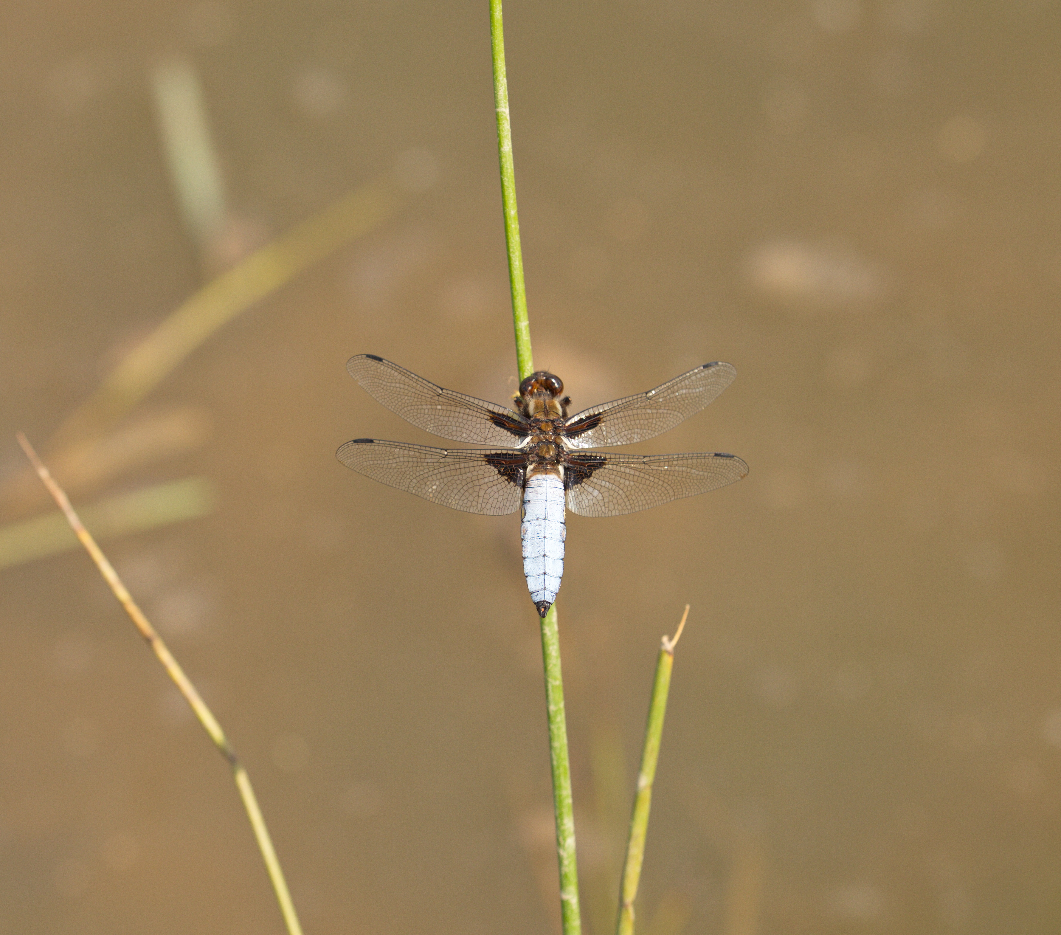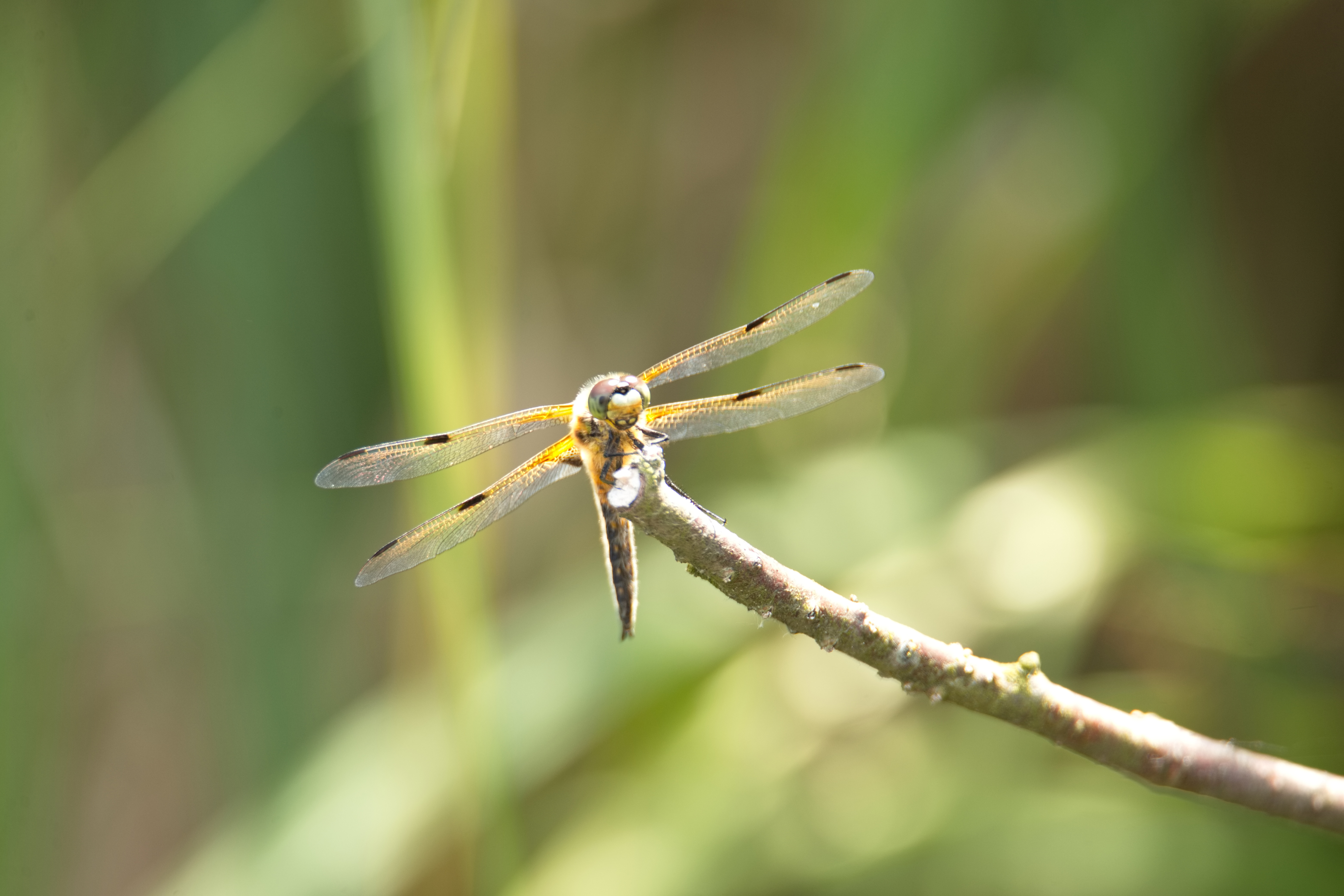 Vierfleck (Libellula quadrimaculata) auf einem Schilfhalm