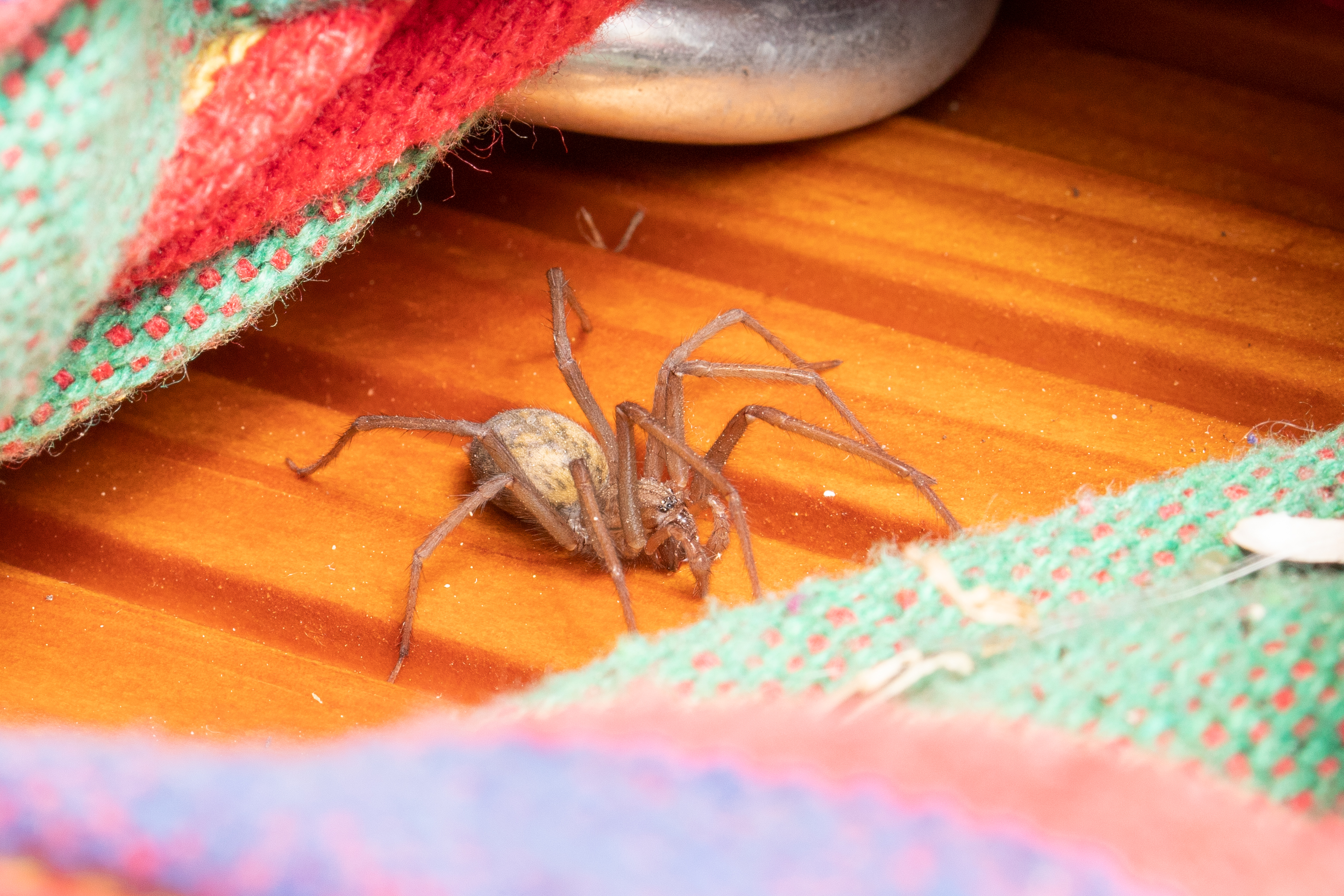 Hauswinkelspinne (Eratigena atrica) auf dem Balkon.