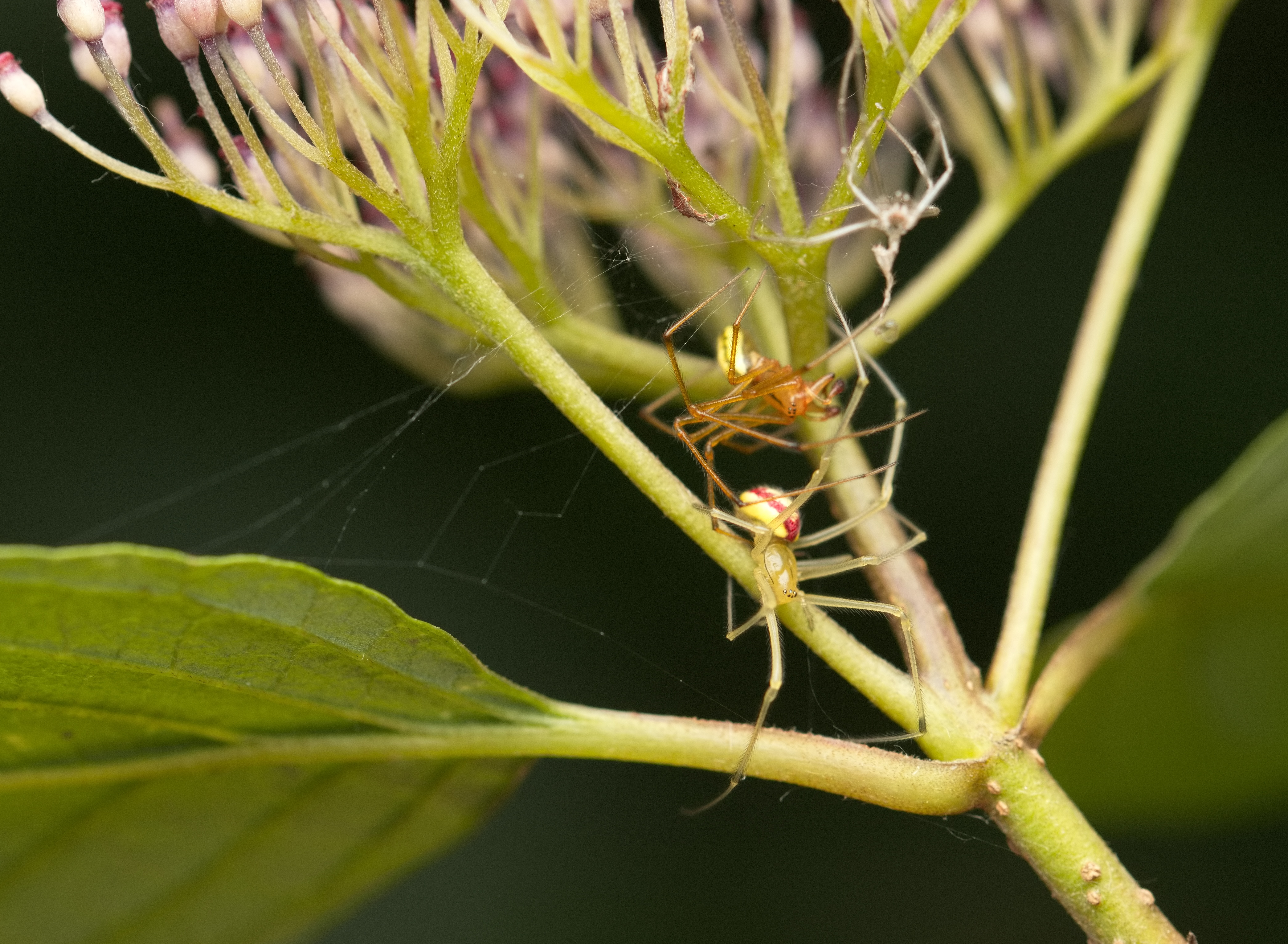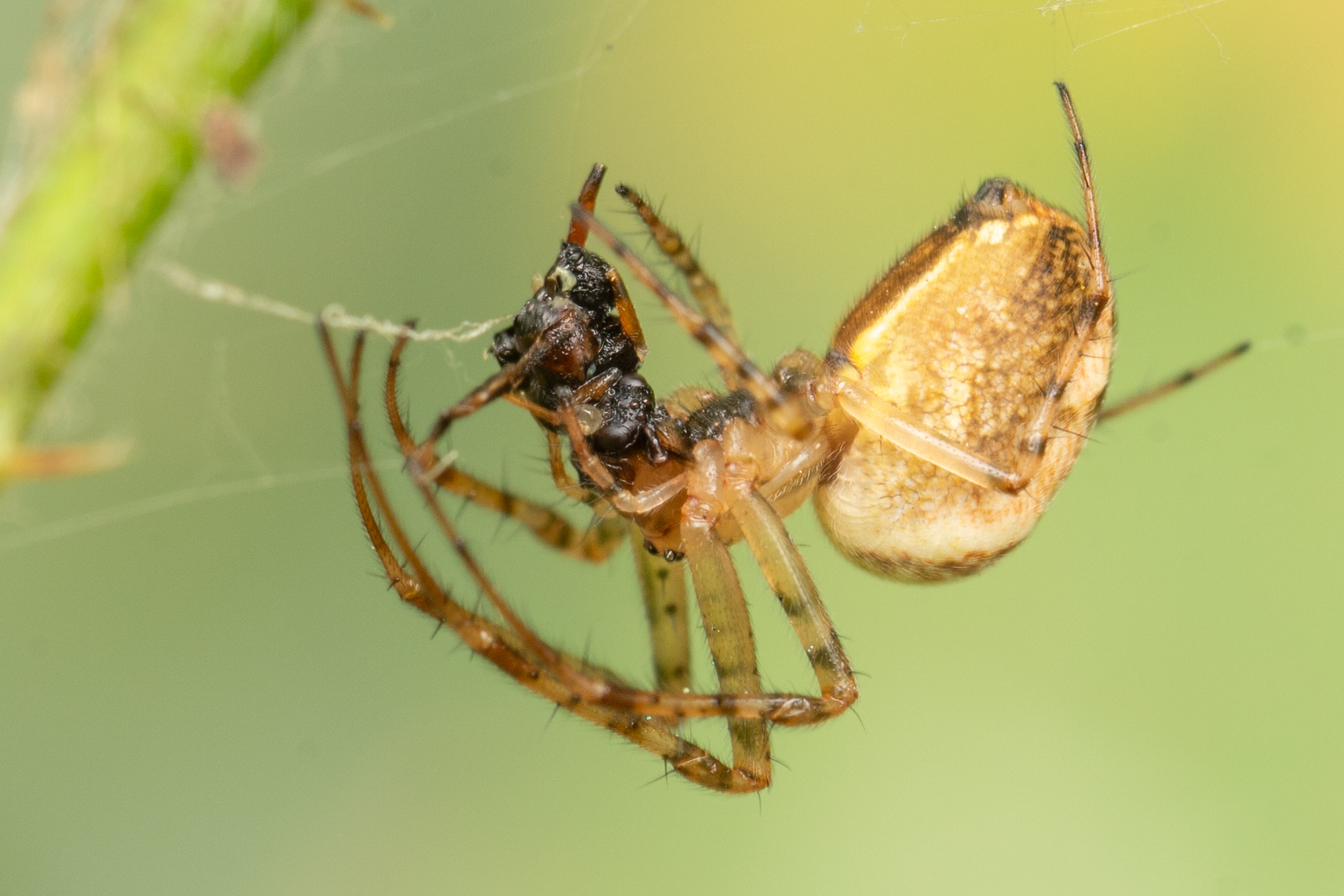 Gewöhnliche Ovalspinne (Enoplognatha ovata) auch bekannt als Rotgestreife Kugelspinne.