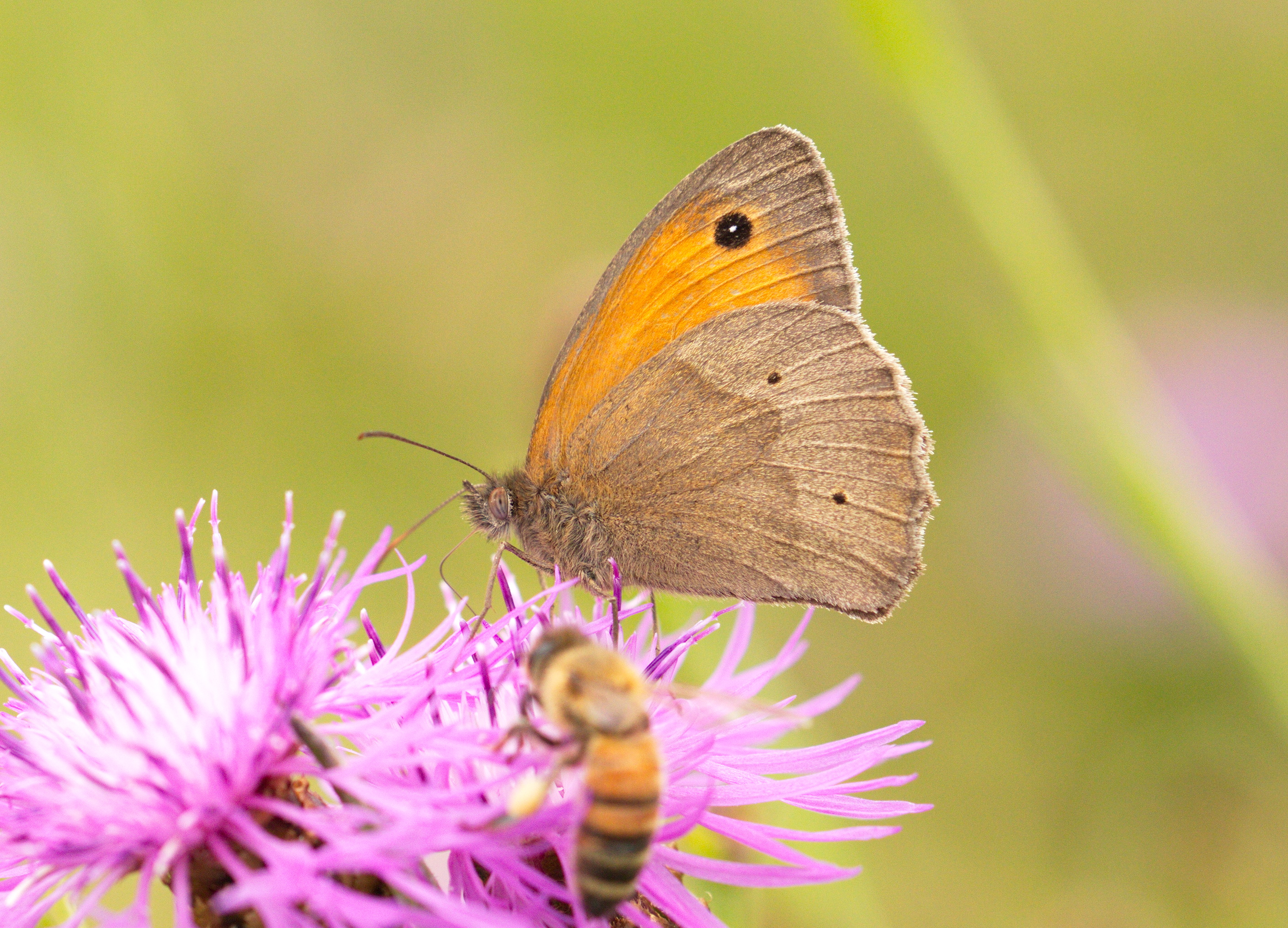 Großes Ochsenauge (Maniola jurtina) auf einer Flockenblume.
