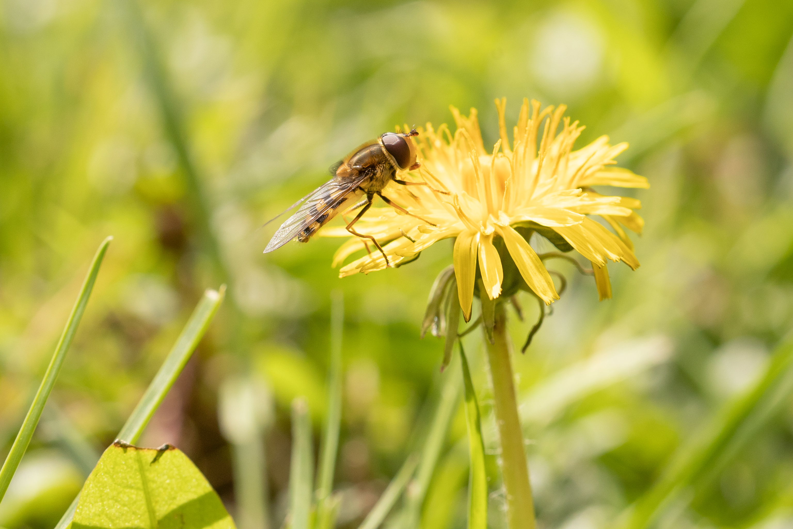 Große Schwebfliege (Sypphidae ribesli) auf einem Löwenzahn.