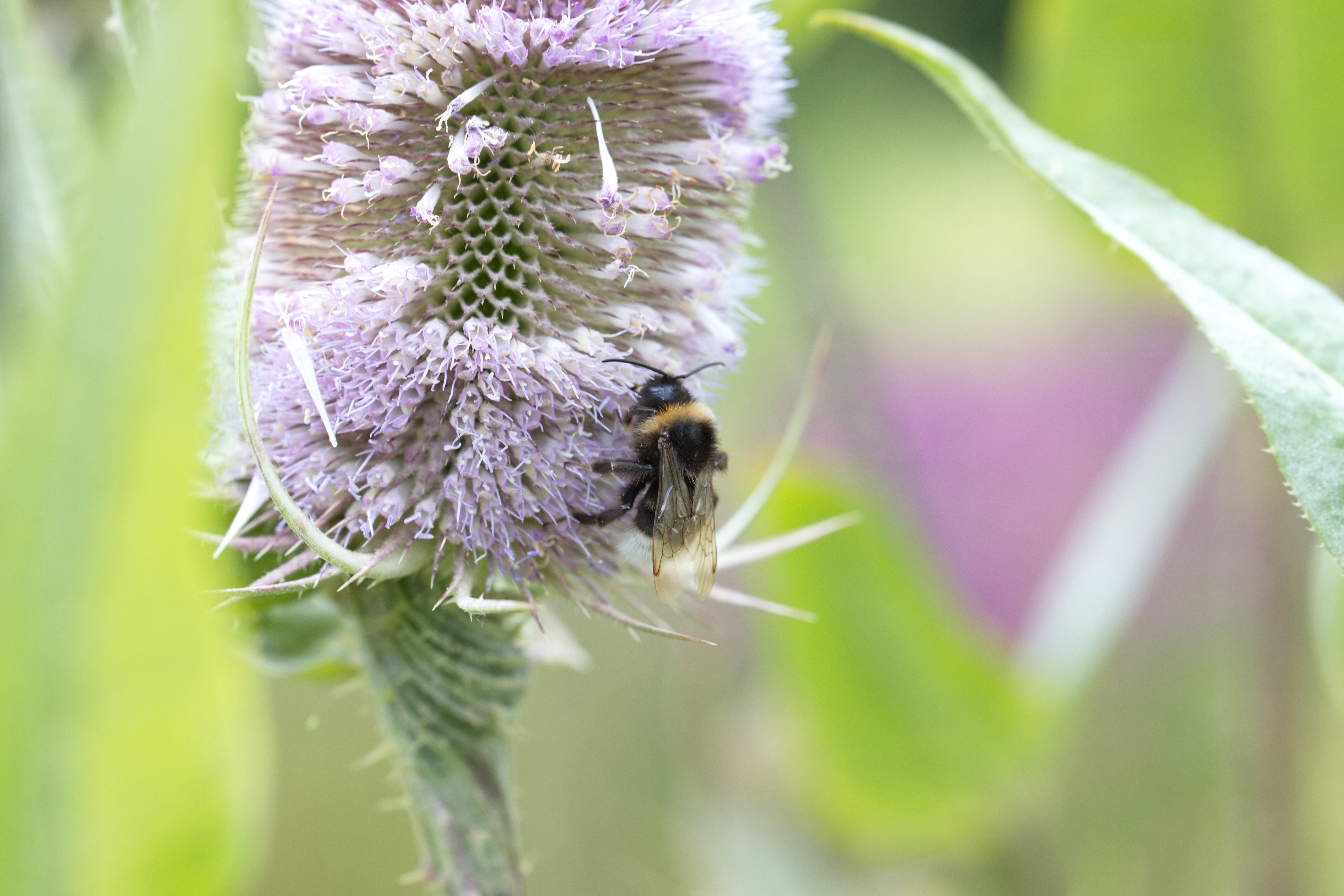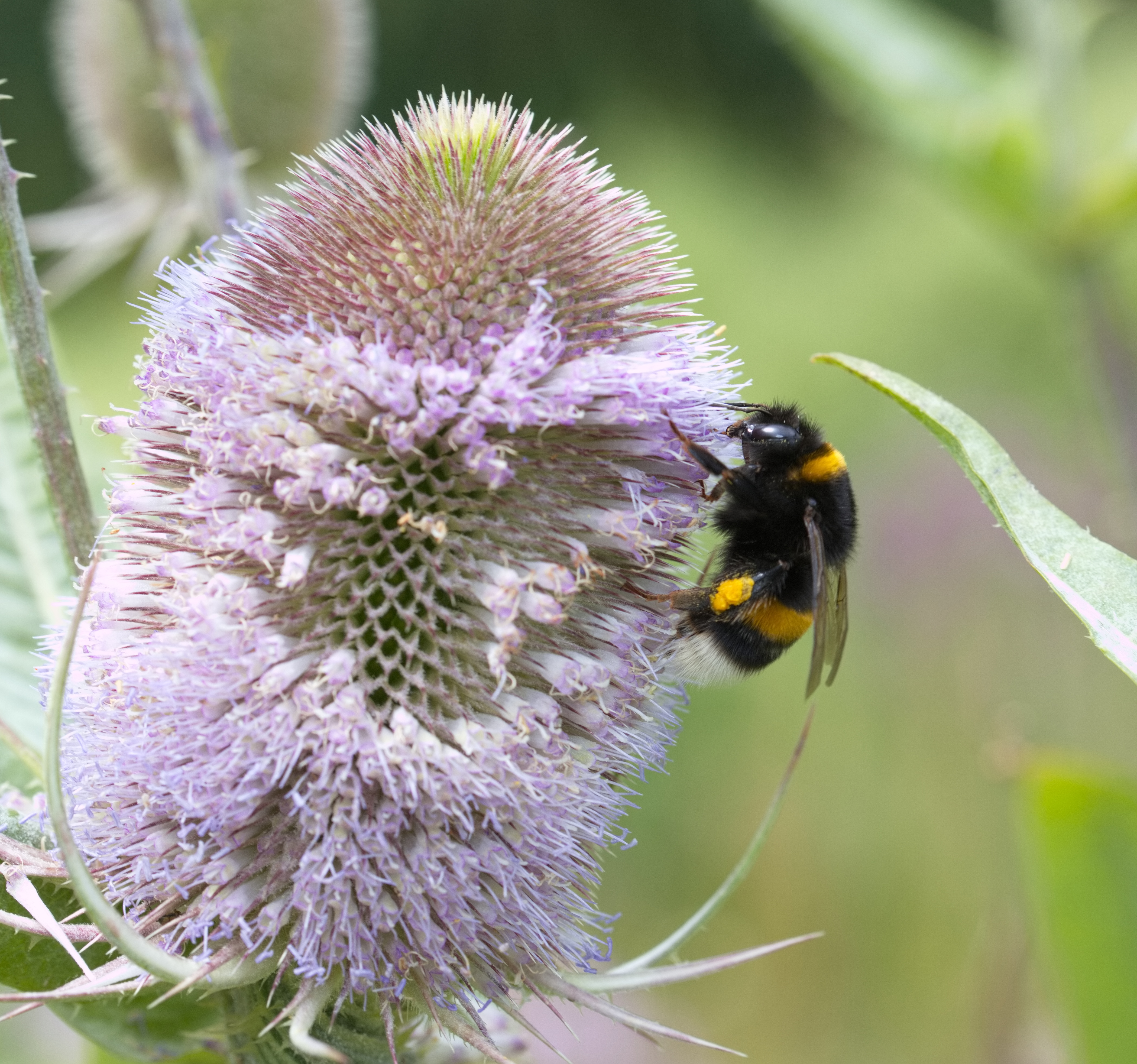 Ackerhummel (Bombus pascuorum) auf einer Wilden Karde.