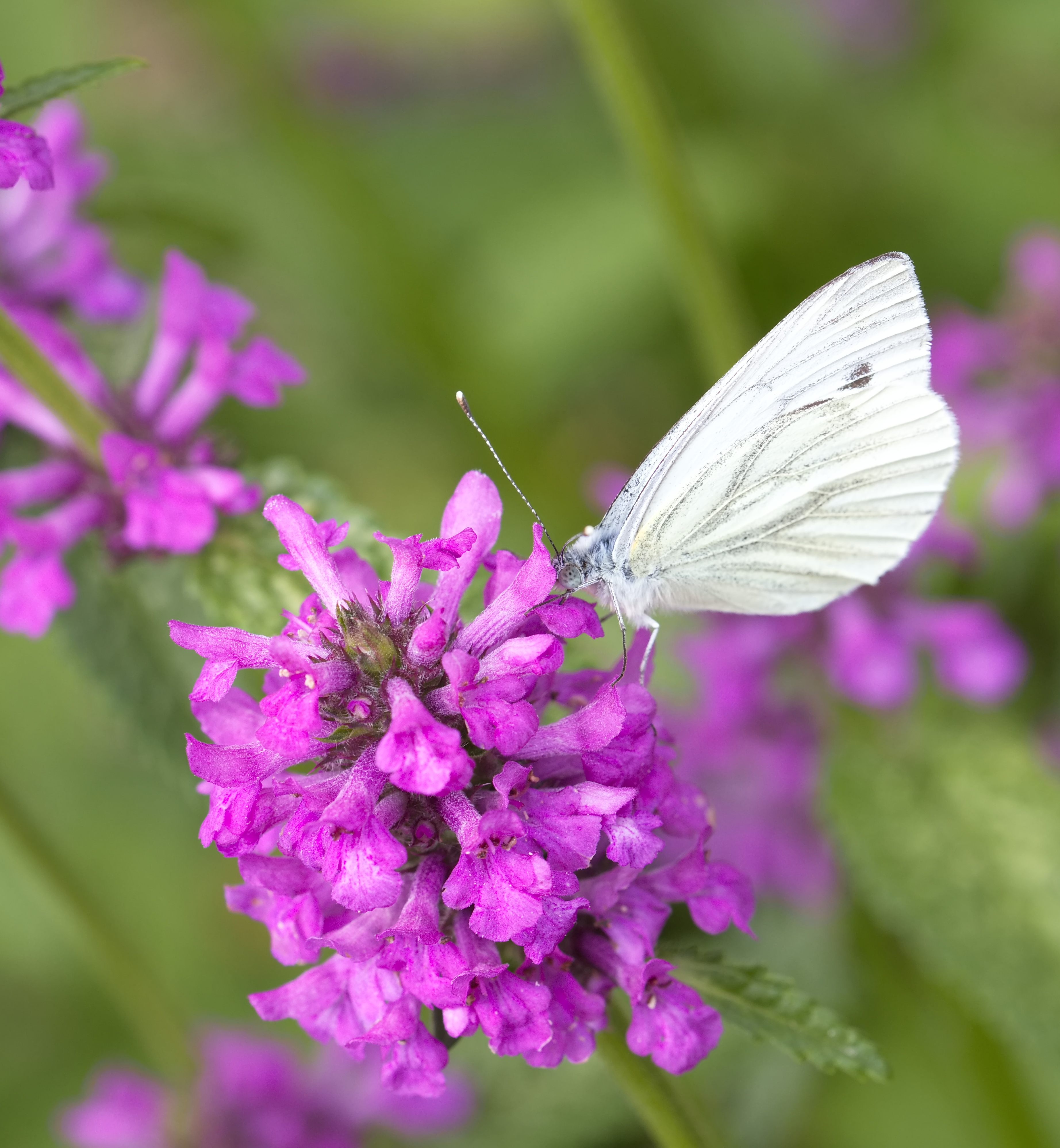 Kleiner Kohlweißling (Pieris rapae) auf der Blüte des Heilziest.