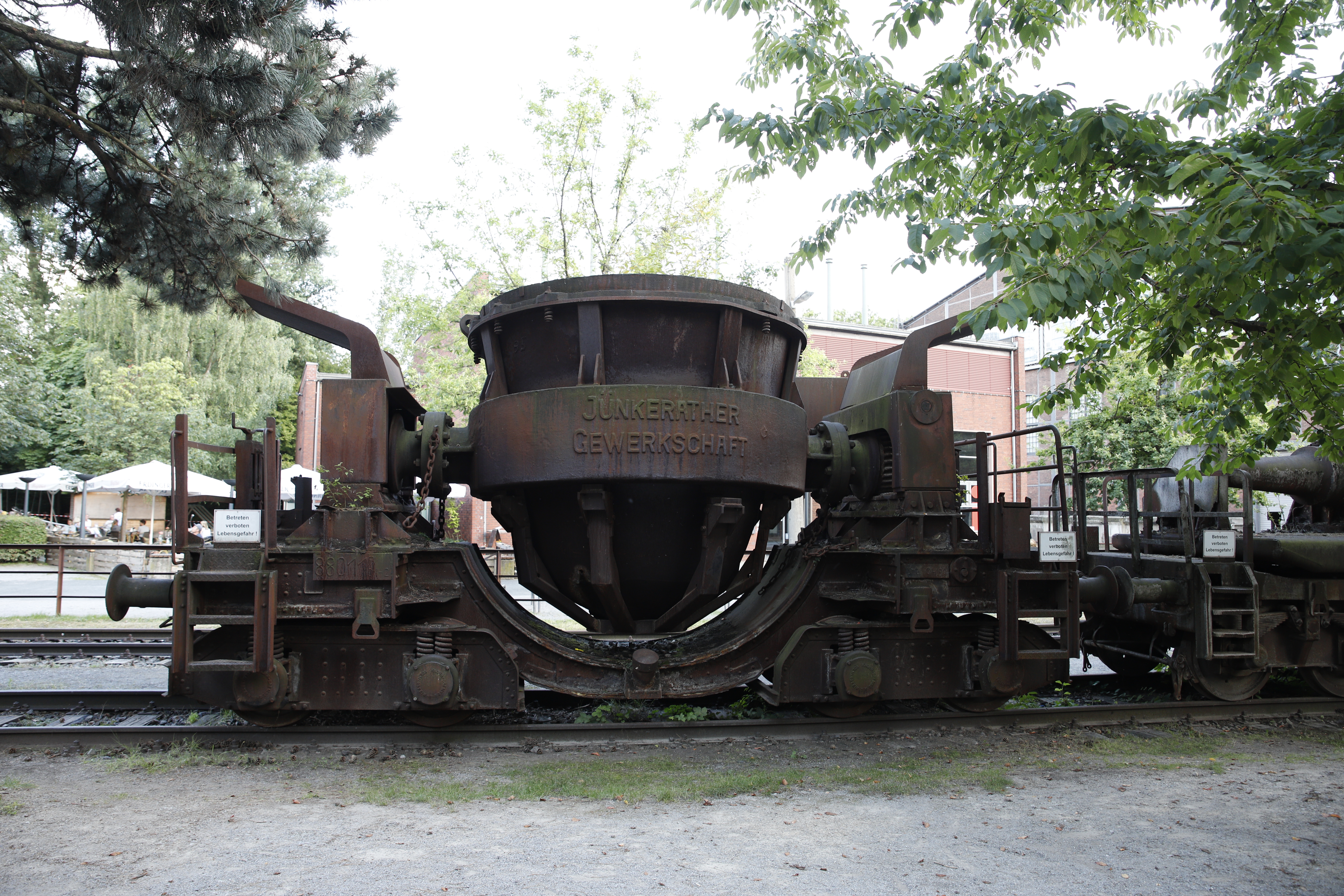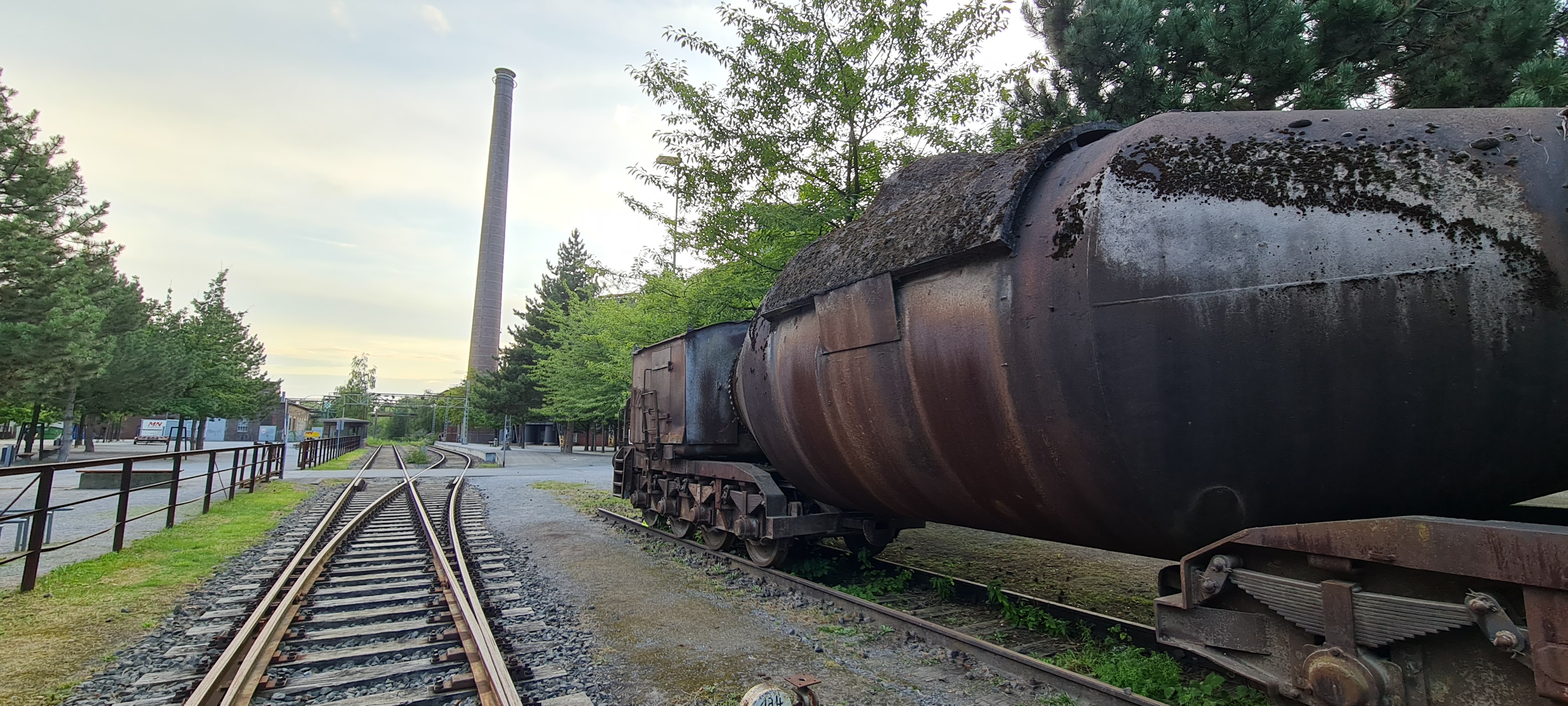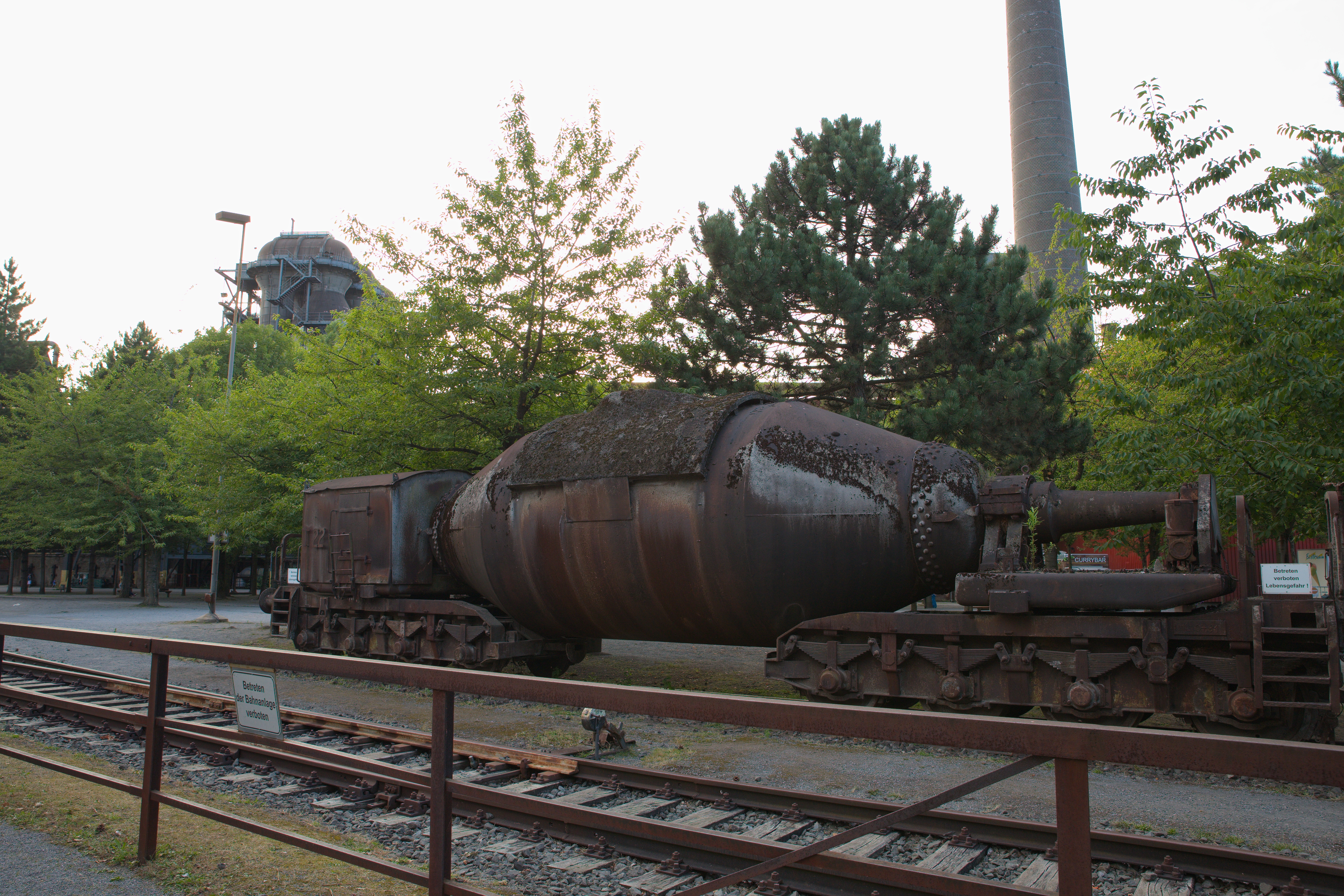 Alte Gleisanlage mit Torpedowagen, zum Transport von flüssigem Roheisen.