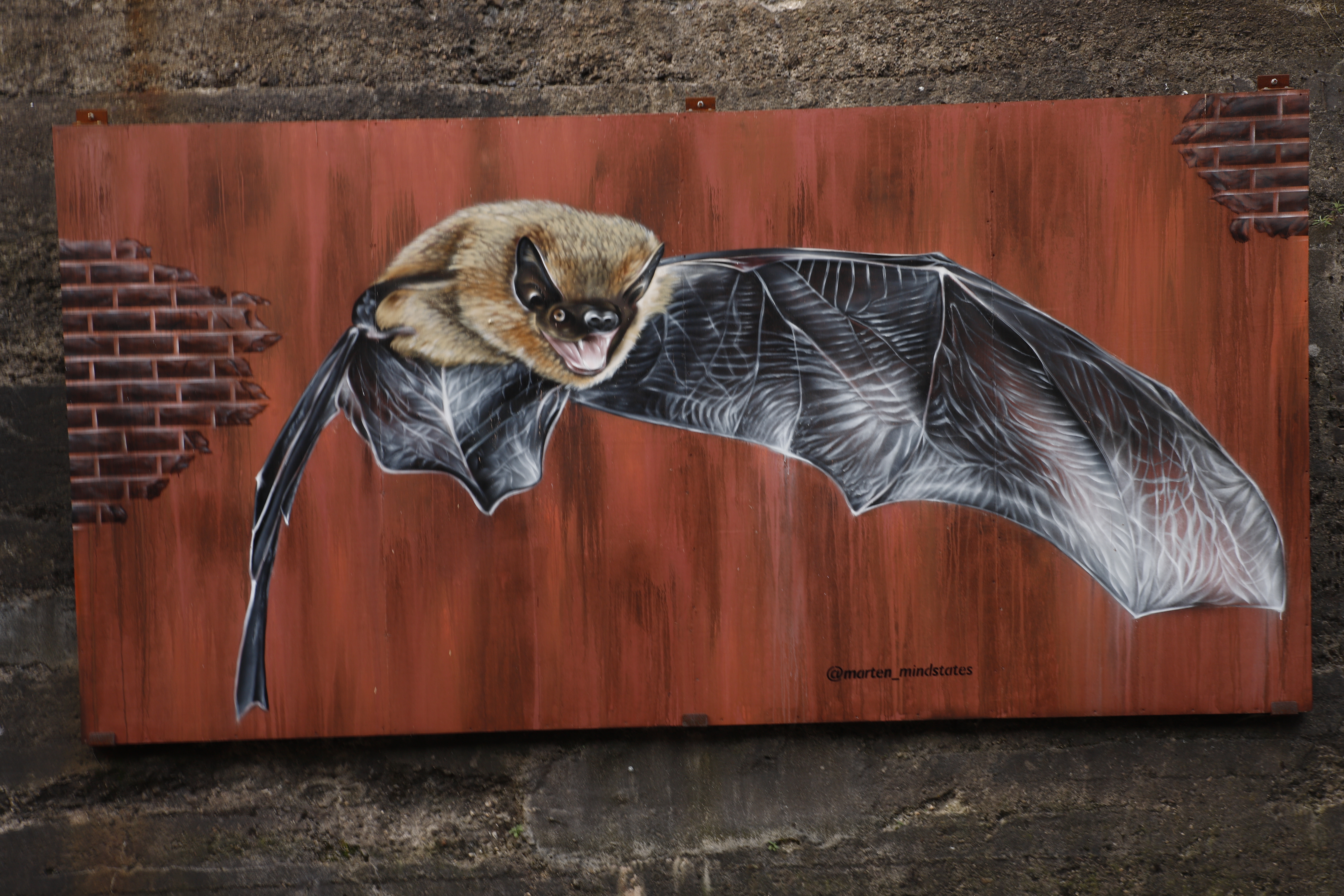 Wandgraffiti einer Fledermaus.