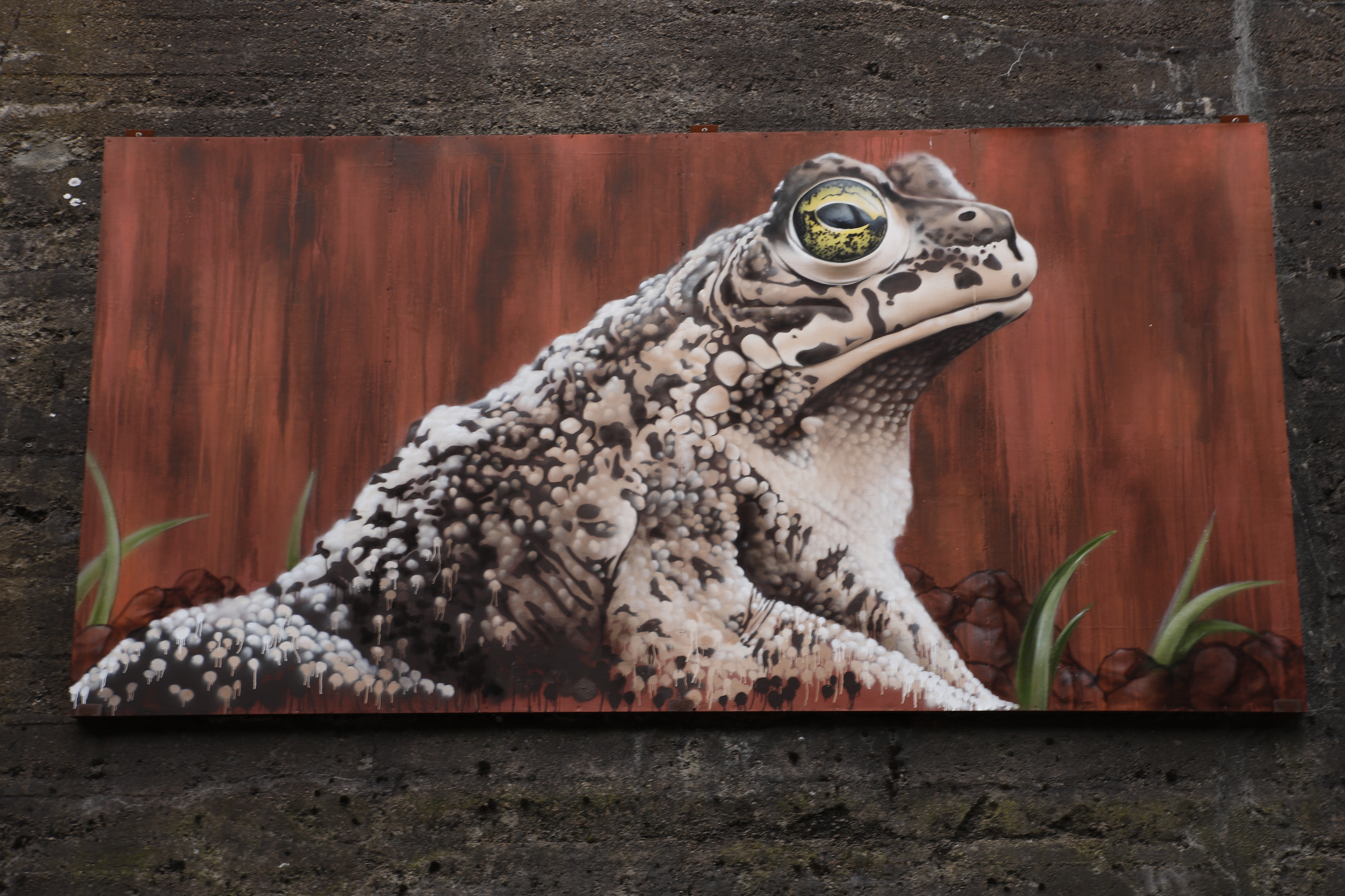 Wandgraffiti einer Wechselkröte. Veröffentlicht 28.06.2021