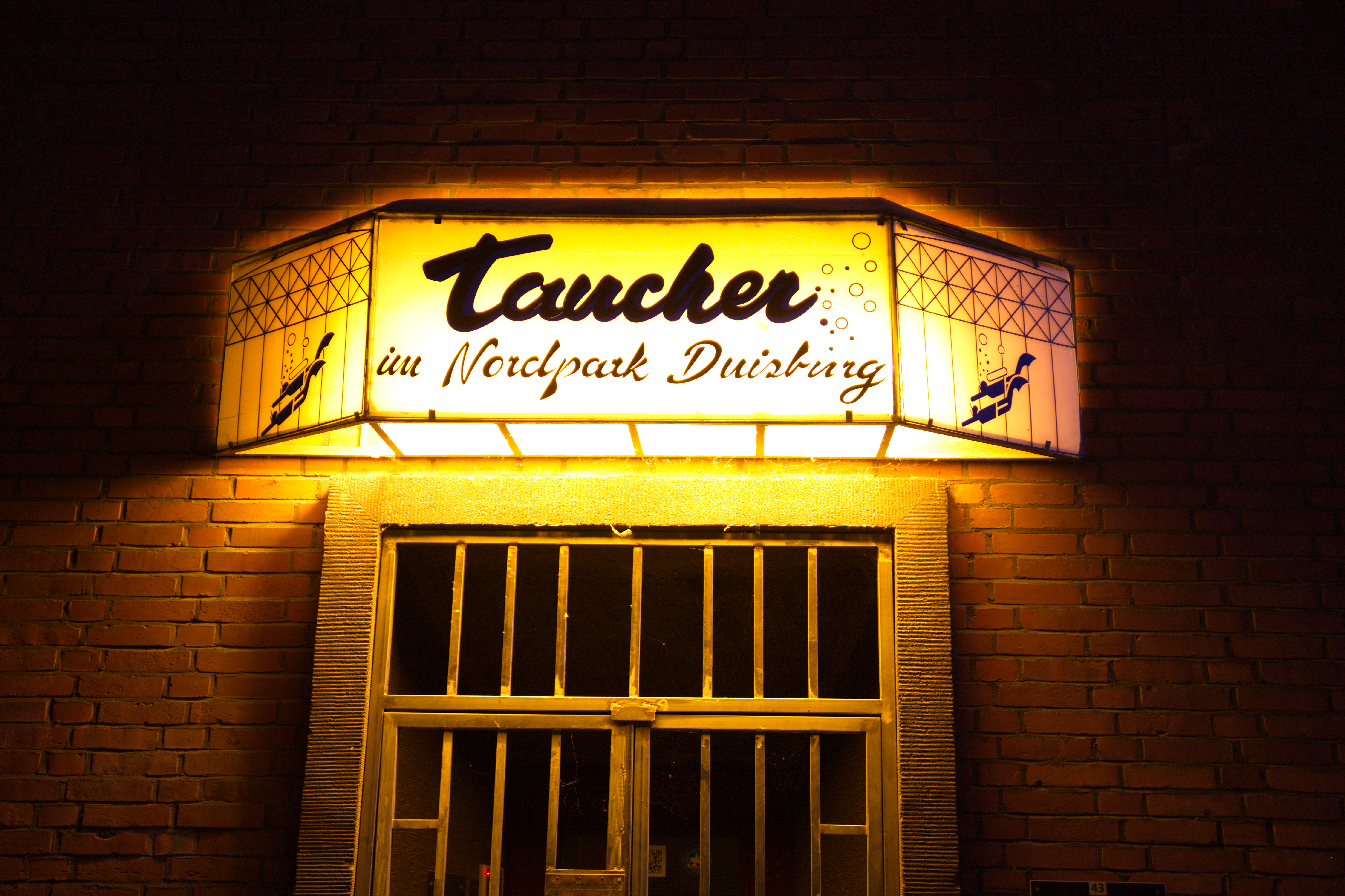 Das "Krokodil", angestrahlt bei Nacht.